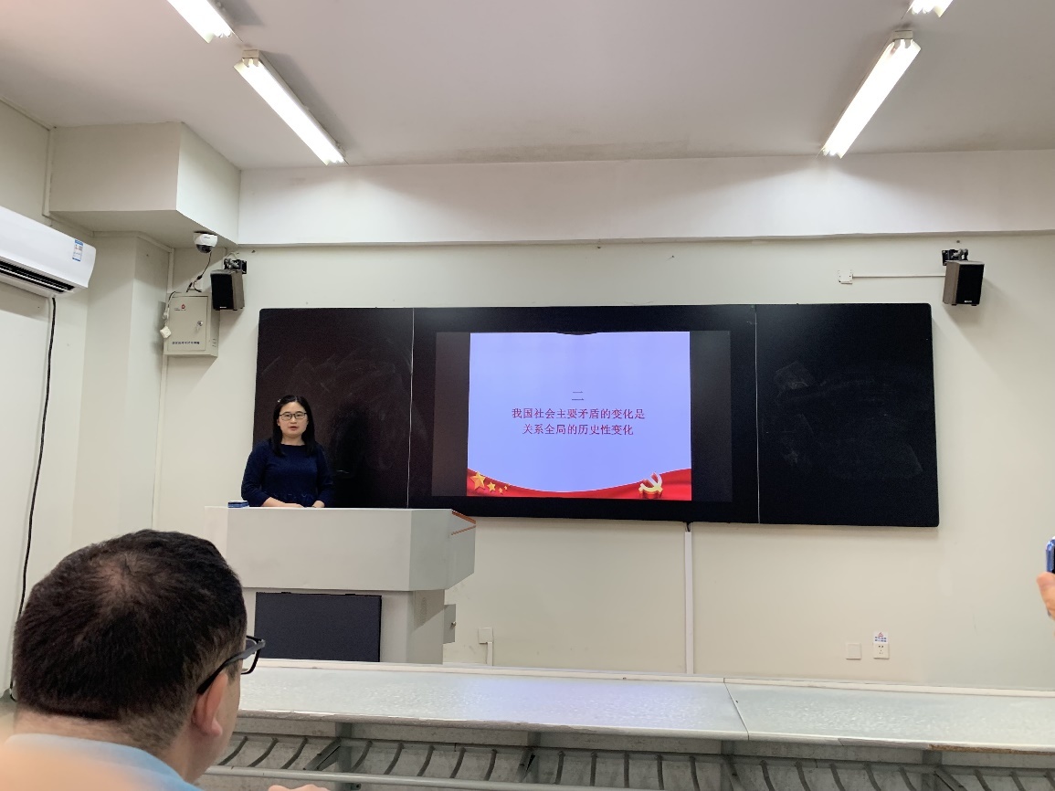 青年教师朱晓林、孙凤兰和洪北頔分别以《社会主义核心价值观的基本内容》《我国社会主要矛盾的变化》《落后国家地区建设社会主义》为题作了教学展示。三位教师教态大方,重点难点突出,教学过程设计合理,节奏适度,辅助教学环节运用得当。葛翠柏副院长、教学督导唐永干教授及各教研室主任对听课内容进行了点评,大家一致认为三位公开课老师授课准备充分,条理清楚,教学设计条理清晰,课件图文并茂,也对在教学过程中仍需要改进的地方加以提点。