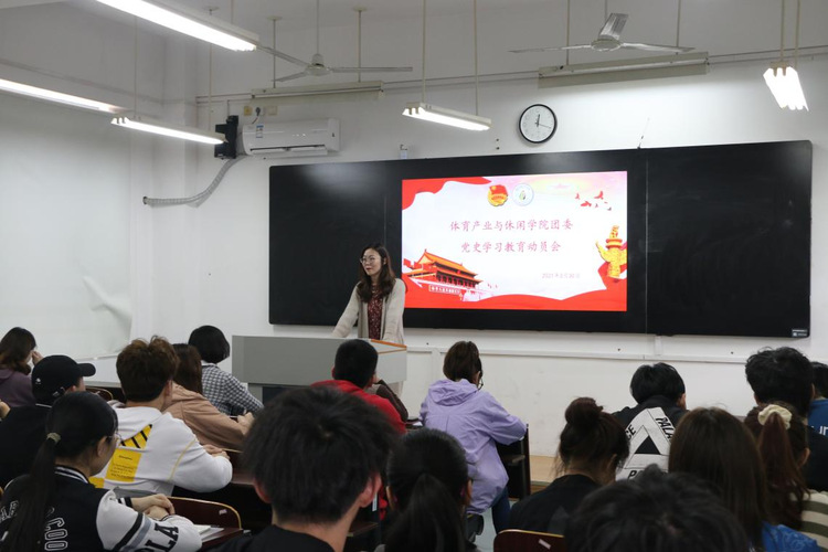 刘雪薇传达了学校党史学习教育动员大会精神及《体育产业与休闲学院关于开展党史学习教育的实施方案》,希望大家认真学习领会会议精神和实施方案要点,努力走在前列、争当标杆,引导全院团员青年从党史中汲取精神和力量,进一步夯实马克思主义和共产主义信仰根基,为广大团员青年当好榜样。