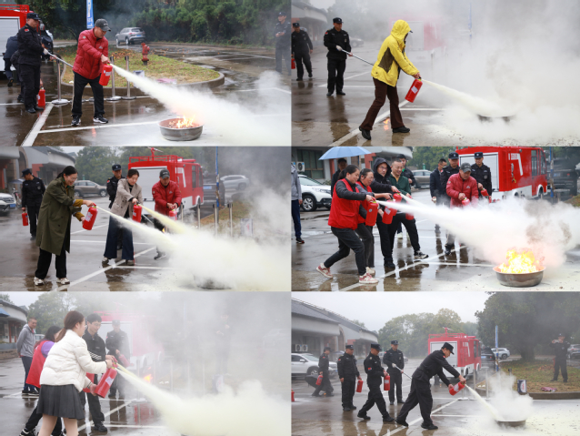 在实操演练环节,学校教职工、义务消防队队员、后勤保障人员现场操作灭火器进行模拟灭火演练。演练中,工作人员现场指导,针对操作灭火器过程中出现的不规范动作及时予以纠正,确保每位参与者都能规范使用灭火器,切实掌握初期火灾扑救技能。