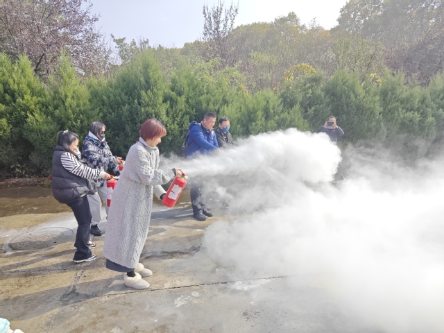 林正双参谋通过生动的火灾案例诠释了火灾的危害,强调要牢固树立消防责任意识、清除消防安全隐患,同时教会大家如何进行初期火灾扑救,如何在火场中逃生自救,如何正确使用灭火器、消防水枪等消防器材,随后,参训人员在统一组织和指导下,开展了灭火演练。