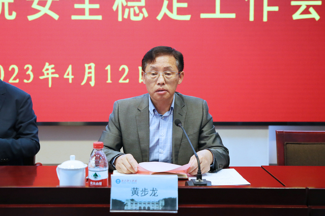 4月12日上午,我校召开2023年安全稳定工作会议。校党委书记朱传耿出席会议并讲话。校党委常委、总会计师黄步龙主持会议并作工作部署。各单位各部门主要负责人参加会议。