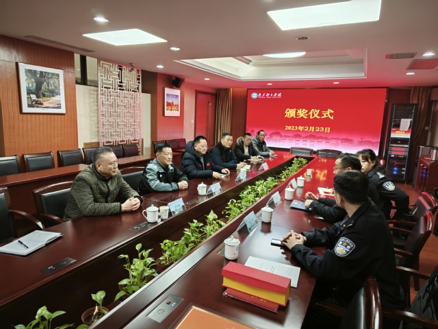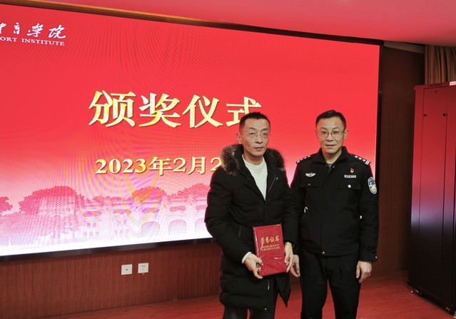 2月23日上午,南京市公安局内保支队副支队长卢才勇来校颁奖并对接下来我校的安全稳定工作进行指导,校党委常委、副校长金松出席颁奖仪式。