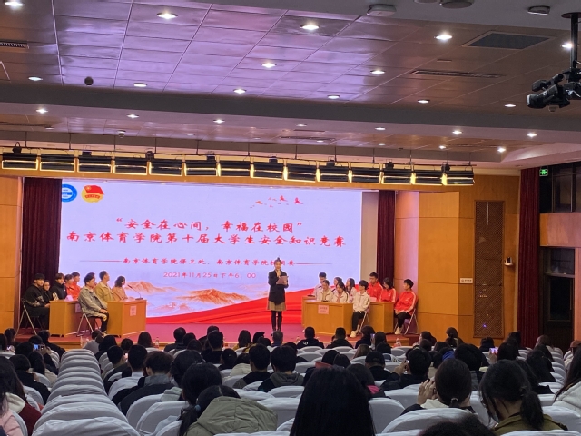 2021年11月25日晚,南京体育学院“安全在心间,幸福在校园”第十届大学生安全知识竞赛决赛在图书馆报告厅举行,本次比赛由校保卫处、校团委主办,相关部门负责人和各二级学院领导出席决赛。