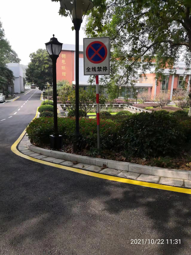 禁令、警告标识以及盲区观察镜主要设置在窄路单行道、陡坡、有盲区的转弯处,有盲区的交汇路口。提醒交通参与者注意安全,谨防交通事故的发生。指示标识主要以停车场指示标识为主,辅以禁停标识。指引规范停车,文明参与交通,营造校园良好的道路交通秩序。