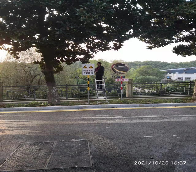随着我校北区道路出新竣工,保卫处经过对现场道路勘察,制定了科学合理的交通标识设置方案。经校领导审批,现配套的道路交通标志、标牌已经安装到位。标牌以禁令、警告、指示标识为主,辅以急弯盲区的观察镜。标识牌均采用统一尺寸和样式的长方形规格,内容采用标准的交通标识符号,简单、易懂、美观、大方,使驾乘人员能够明显看到、明白、遵守道路交通标识的指示。