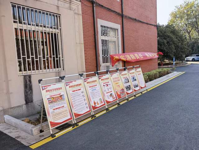一、11.8日在灵谷寺校区和仙林校区摆放消防安全知识展板和悬挂活动主题横幅。