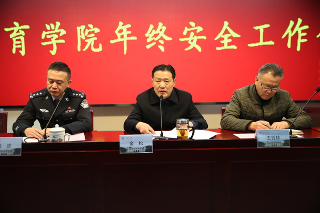 12月27日上午,金松副校长在行政办公楼101会议室主持召开南京体育学院年终安全工作会议,孝陵卫派出所所长殷虎出席,校各单位、各部门主要负责人及相关科室负责人参加会议。
