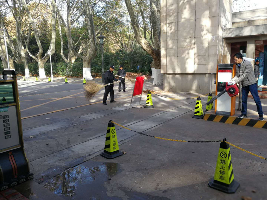 11月24日,根据学校统一部署,保卫处组织全体人员开展第二次迎评校园环境卫生大清扫活动,对行政办公楼前广场、校大门、停车场等卫生包干区进行环境卫生大清扫。通过此次活动的开展,进一步改善校园环境,大家用实际行动迎接本科教学审核评估的到来。