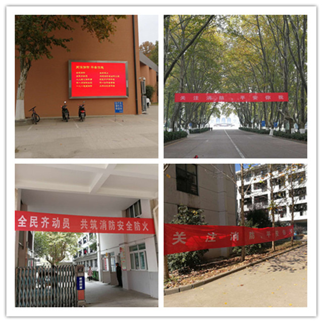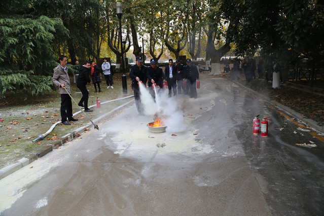 本次活动采取拉横幅、设展板等宣传教育外,还组织专题教育讲座、消防逃生疏散演练、正确使用消防器材培训和灭火技能演练等活动。11月8日、9日,分别在灵谷寺校区、仙林校区大学生公寓开展消防逃生疏散演练。通过模拟的火灾情景,使学生掌握必要的逃生技能,提升自救互救能力。11月10日,邀请玄武区消防大队夏前勇参谋在灵谷寺校区东阶教室进行消防安全专题讲座并在灭火技能演练现场讲解、示范消防器材使用方法,全校各重点要害单位(部门)负责人、工作人员、校义务消防队员和校卫队员参加了听课学习并进行灭火实战演练。