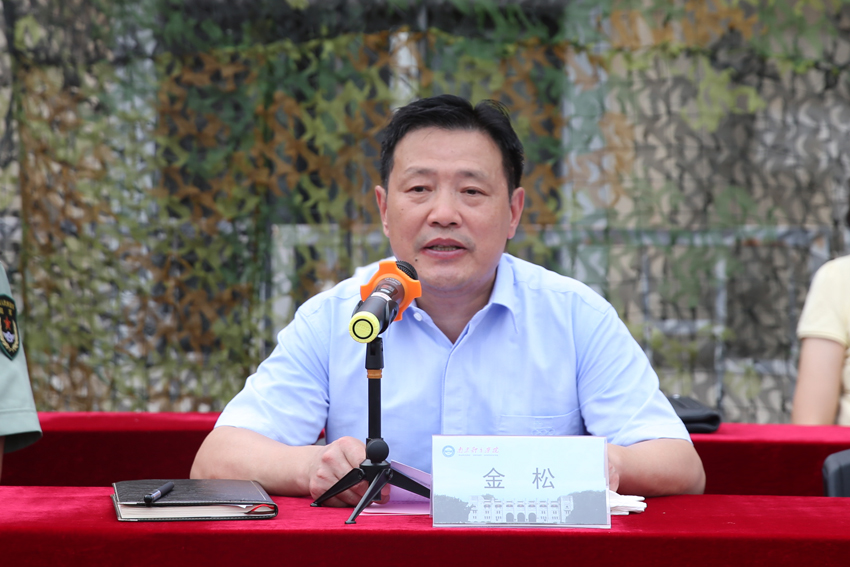 最后,金松副校长和王哲大队长分别讲话,祝贺军训工作取得圆满成功,充分肯定了施训教官和2017级新生在军训期间的良好表现和取得的优异成绩。金松副校长在讲话中希望同学们在今后的学习、工作、生活中继续传承爱国卫国、爱军尚武的优良传统,增强国防观念和忧患意识,维护国家安全,时刻准备着为国防事业贡献青春力量;继续保持军训中严守纪律、吃苦耐劳的优良作风,遵守学校各项规章制度,认真学习专业文化知识,用智慧、勤劳和汗水谱写出绚丽多彩的大学生活;继续发扬军训中锲而不舍、永不言败的亮剑精神,保持积极向上的心态,做到顺境不懈怠,逆境不沉沦,努力开启人生新篇章。