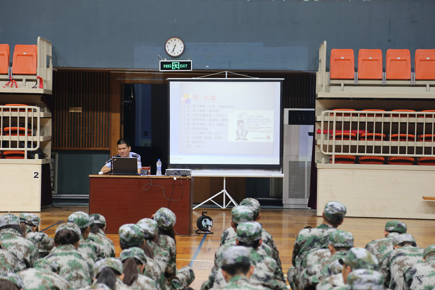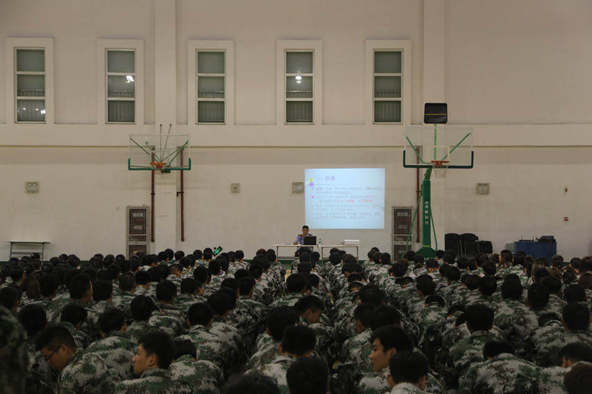 9月20日、21日晚上,根据2017级新生军训工作安排,我校分别在仙林校区综合馆、灵谷寺校区体育馆举办2017级新生校园安全知识专题讲座,由孝陵卫派出所周志田警官主讲。