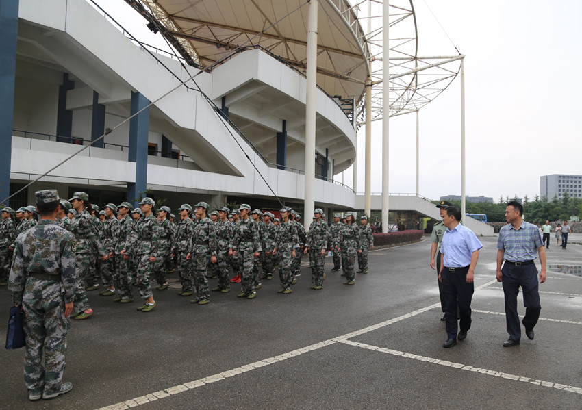 9月20—21日,副校长、校军训工作领导小组组长金松在校人武部主要负责人和施训部队领导等陪同下先后赴仙林校区、灵谷寺校区军训现场,检查指导2017级新生军训工作。