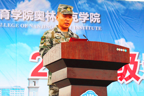 奥林匹克学院副院长、军训团政委仲惠圣讲话