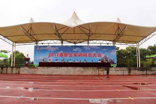 动员大会上,金松副院长向同学们介绍了南京体育学院教学、训练、科研基本情况,以及刚刚结束的第十三届全运会中所取得的优异成绩,并就军训工作提出了三点希望:一是希望同学们以饱满的政治热情,积极投身军训之中,拿出拼劲、干劲和闯劲,努力站出最标准的军姿,走出最雄壮的步伐,练就最刚强的意志,成就最优秀的人才;二是希望同学们以军人的标准要求自己,服从命令,听从指挥,以高昂的热情,艰苦的努力,赢得军训的最后胜利,不辜负部队、学院、家长对你们的期望;三是希望同学们强化团队意识,崇尚集体荣誉,训练上要互相帮助,生活上要相互关心,不折不扣、踏踏实实地完成好军训任务。