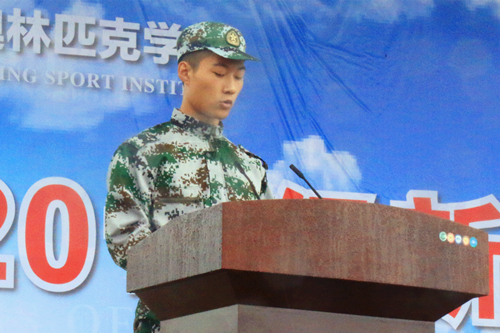 奥林匹克学院副院长、军训团政委仲惠圣也对军训提出工作要求,承训部队教官代表李明和参训学生代表于海洋同学进行了表态发言。