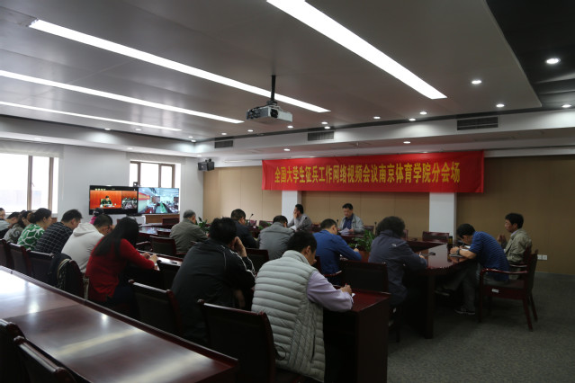 根据上级通知要求,4月26日上午,我院在201会议室设立了“全国大学生征兵工作网络视频会议南京体育学院分会场”。副院长、院征兵工作领导小组副组长金松,相关职能部门负责人,各高教单位分管学生工作的系领导、奥林匹克学院征兵工作负责人、辅导员、征兵办工作人员等参加了会议。
