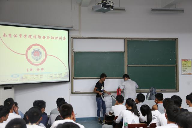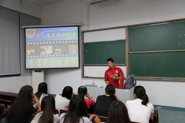 课堂上,保卫处消防干事许辉老师结合近期发生的大学生案例,分别讲解了消防安全、治安安全,交通安全、集体活动安全、防传销等知识,重点介绍了电信网络诈骗、“校园贷”等在大学生群体中易发案件的产生原因、行骗过程和防范措施,并现场演示消防灭火器材的正确使用方法。