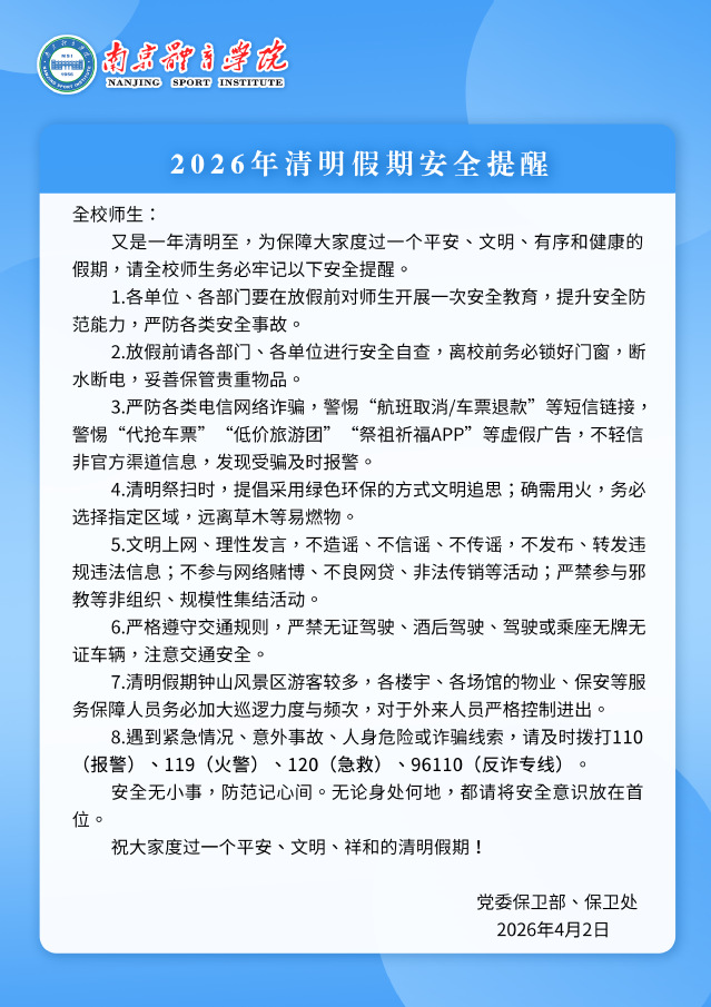 版权所有:南京体育学院党委保卫部、保卫处