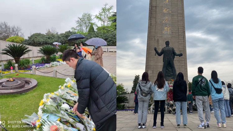 清明寄哀思,深情慰英魂。体育产业与休闲学院学生党员、团员青年纷纷前往烈士陵园,向革命烈士默哀、敬献鲜花,以表达对革命先烈、民族英雄与前辈楷模的哀思和怀念。随后同学们还参观了纪念馆,激励大家铭记红色历史、继承光荣传统,为实现中华民族伟大复兴的中国梦不懈奋斗。