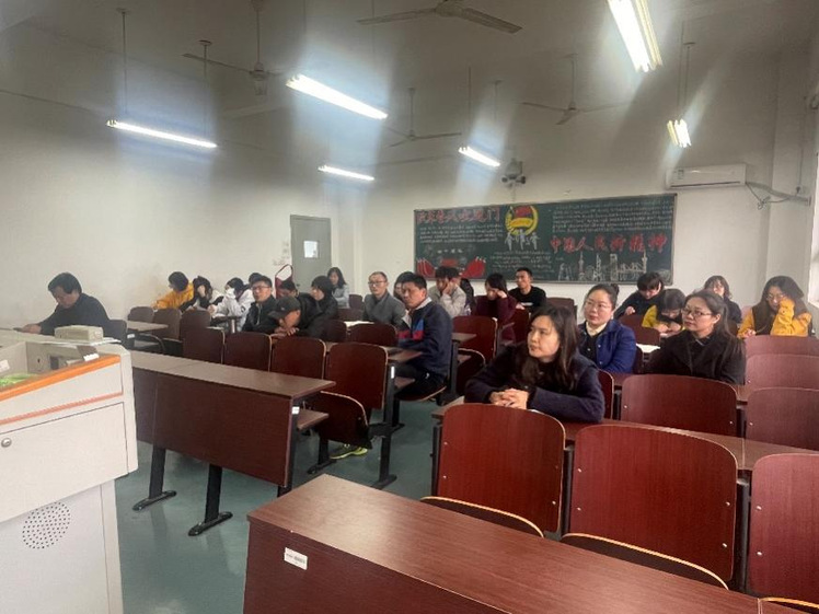 王进首先传达了学校师德师风建设会议精神,学习了学校师德师风建设工作的三方面要求:一是提高政治站位,准确把握新时代师德师风建设新使命;二是总结经验不足,深刻认识学校师德师风建设工作现状;三是聚焦工作重点,切实推动学校师德师风建设取得新成效。接着,王进带领全体与会人员学习了学校师德师风建设会议的三点工作部署:第一、坚持以思想铸魂为引领,不断丰富师德师风建设内涵;第二、坚持以行为世范为准则,努力塑造师德师风建设典范;第三、坚持以责任落实为关键,有力确保师德师风建设成效。