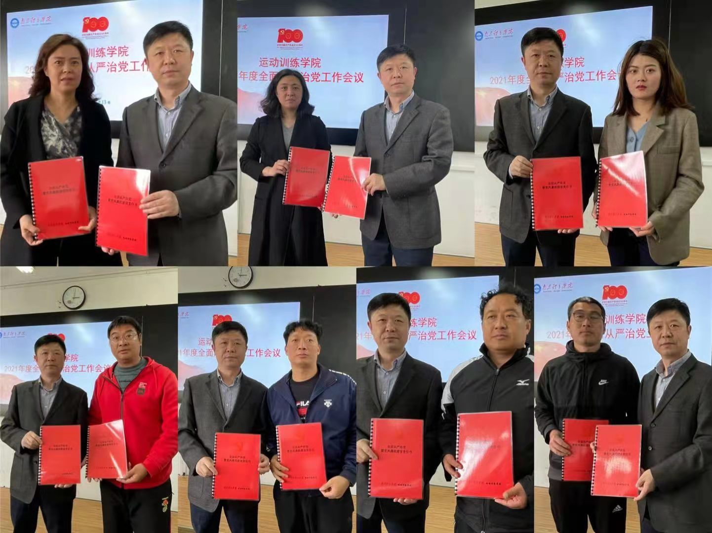 全面从严治党永远在路上。学院全体党员师生要树牢“四个意识”,坚定“四个自信”,坚决做到“两个维护,充分发挥全面从严治党引领保障作用,为学院国家一流专业建设,实现为党育人、为国育才任务,高质量完成年度各项工作任务提供坚强保证,以优异成绩庆祝中国共产党建党100周年和南京体育学院建校65周年。
