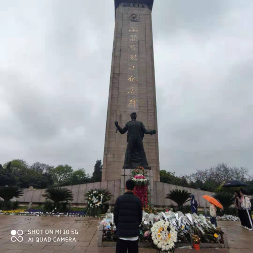 2021年2月20日,习近平总书记在党史学习教育动员大会上发表重要讲话,站在统筹中华民族伟大复兴战略全局和世界百年未有之大变局的时代高度,习近平总书记指出“党的历史是最生动、最有说服力的教科书”,中国革命历史是“最好的营养剂”,必须铭记光辉历史、传承红色基因。任课教师及时把党史学习的要求融入了课程教学,号召大学生积极学习党史,听党话,跟党走。2021年4月4日上午,清明时节,没有回家的32041班部分同学,按照老师的要求去雨花台烈士陵园开展《思想道德修养与法律基础》课程实践参观,学习党史,缅怀革命先辈,弘扬雨花英烈精神。