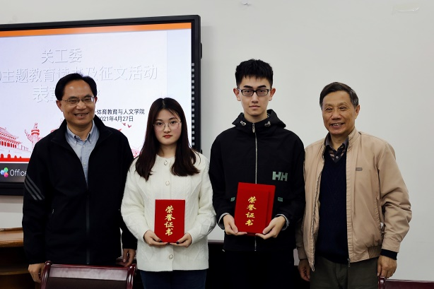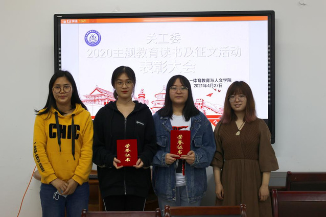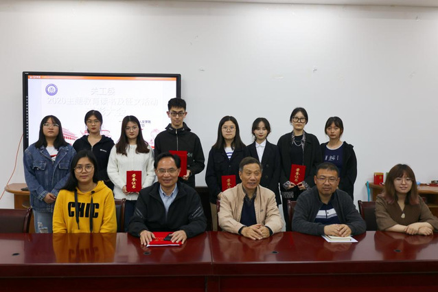 为了弘扬脱贫攻坚精神,推进学院文化建设,表彰优秀征文作品,4月27日,我院关工委在教学办公楼115会议室组织召开“2020主题教育读书及征文活动”表彰活动。前体育系主任、现体育教育与人文学院关工委常务副主任王爱丰教授、学院党总支书记邹国忠、学院副院长叶强、学院分团委副书记宋树梅、辅导员沈梦出席会议,全体获奖学生参加会议。