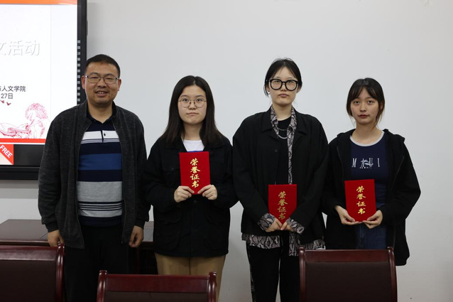 王爱丰教授、邹国忠书记、叶强副院长、宋树梅老师和沈梦老师为省征文三等奖、院一、二、三等奖获奖人员颁奖。