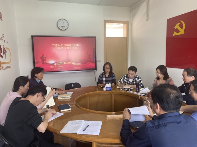 4月29日中午,武术与艺术学院党总支在教学实验楼2号楼308会议室召开中心组(扩大)学习会议,本次学习主题为《论中国共产党历史》,会议由武术与艺术学院党总支书记殷怀刚主持,学院中心组全体成员参加会议。