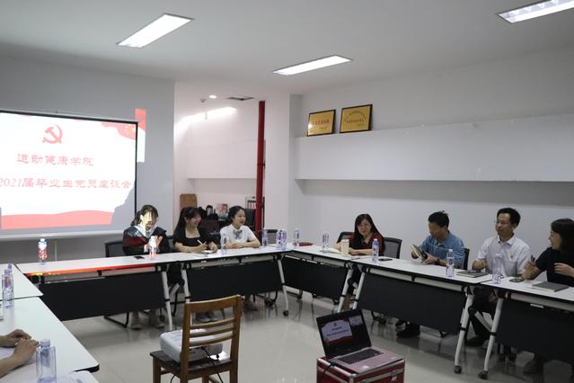 6月23日下午,运动健康学院欢送2021届毕业生党员座谈会于图书馆415会议室举行。运动健康学院党总支书记王猛、院长汤强、副院长赵彦和毕业班辅导员魏晓民出席本次会议,2021届全体毕业生党员参加会议。会议由党总支副书记石红霞主持。