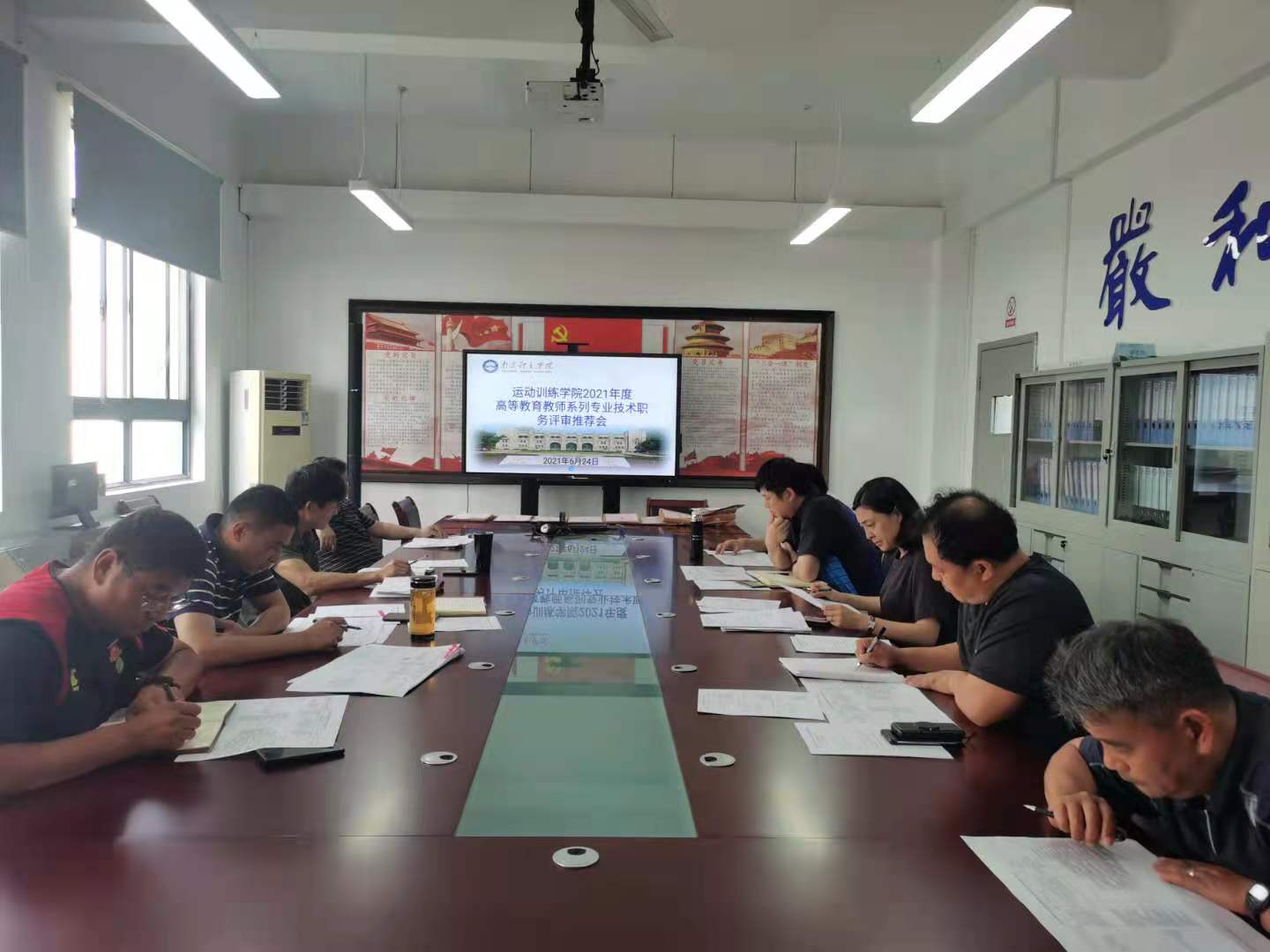 为落实《关于做好我校2021年度专业技术职务评审工作的通知》及《运动训练学院2021年度专业技术职务评审工作方案》工作要求,6月24日下午,运动训练学院召开2021年度高等教育教师系列专业技术职务评审推荐会。运动训练学院院长赵琦主持会议,运动训练学院职称评审推荐专家组成员参加了会议。