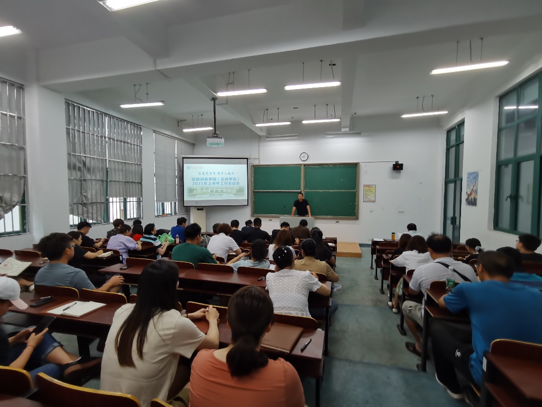 7月5日上午,运动训练学院在仙林校区218教室召开“庆建党百年 践育人使命”2021年上半年工作总结会。会议对上半年工作进行总结,并开展师德师风专题教育,传达学习习近平总书记在庆祝中国共产党成立百年大会上重要讲话精神。运动训练学院全体教师参加会议,会议由学院副院长张明主持。