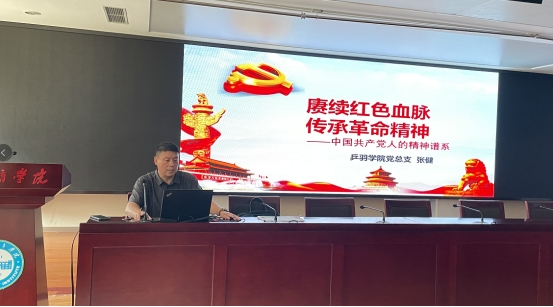 张健首先简要介绍了中国共产党100奋斗历程中红色精神谱系的形成过程,按照中国共产党的不同发展阶段,着重选取了“红船精神”、“井冈山精神”、“长征精神”、“遵义会议精神”、“延安精神”、“抗战精神”、“西北坡精神”、“抗美援朝精神”、“红旗渠精神”和“大庆精神”等10种精神,结合每种精神涉及的具体事例的时代背景、主要人物,详细讲解了其主要内容和重大意义。他最后强调,中国共产党人的精神谱系不是单纯的精神现象,更非纯精神活动的产物,而是来自于党的伟大的革命、建设和改革的实践活动,是我们一代代共产党人创造的宝贵精神财富,对我们今天党的建设和社会主义现代化强国建设都具有直接、具体的指导意义,我们要赓续红色血脉,振奋革命精神,在我们当前十四届全运会的决战中,发挥党员先锋模范作用,战胜困难,勇往直前,创造佳绩,再续辉煌。