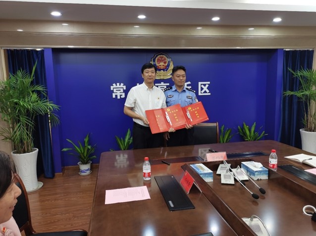 陈旭光在签约仪式上对南京体育学院一行的到来表示热烈的欢迎。他表示,希望在党建工作引领下,通过定期开展互动交流,进一步发掘双方优势资源;通过校警合作,在提升校园安全工作水平和促进常州市新北区公安局队伍能力提升上取得新成效、新进展、新突破。