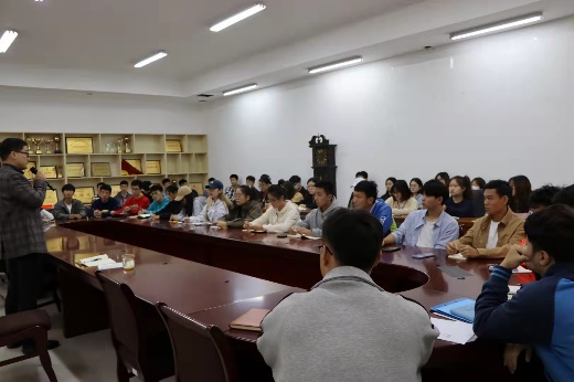 卢奎在会上讲述了体育教育与人文学院的的光辉历史,激发了同学们的学院自豪感,并勉励大家真正做到热爱学校、热爱学院、热爱专业。同时,他提出对团学学生干部的三点要求:一是学史明理,热爱南体。即学习四史、学习习总书记系列重要讲话内容,了解南体65年的发展历史,付出实际行动,努力学习,在学有余力的条件下多参加实践活动;二是团结一心,凝心聚力。即加强自身号召力,做好宿舍管理工作,发挥干部榜样作用,强化责任担当意识;三是洁身自好,改进作风。即重视作风建设,坚守初心,向优秀党员学习,展现自身的人生价值。