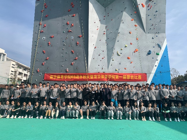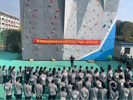 11月20日,南京体育学院体育产业与休闲学院举办第一届攀岩比赛,为学校65周年华诞献礼。体育产业与休闲学院院长于翠兰、副院长唐芒果、阮威老师、孙艳芳老师出席开幕式。