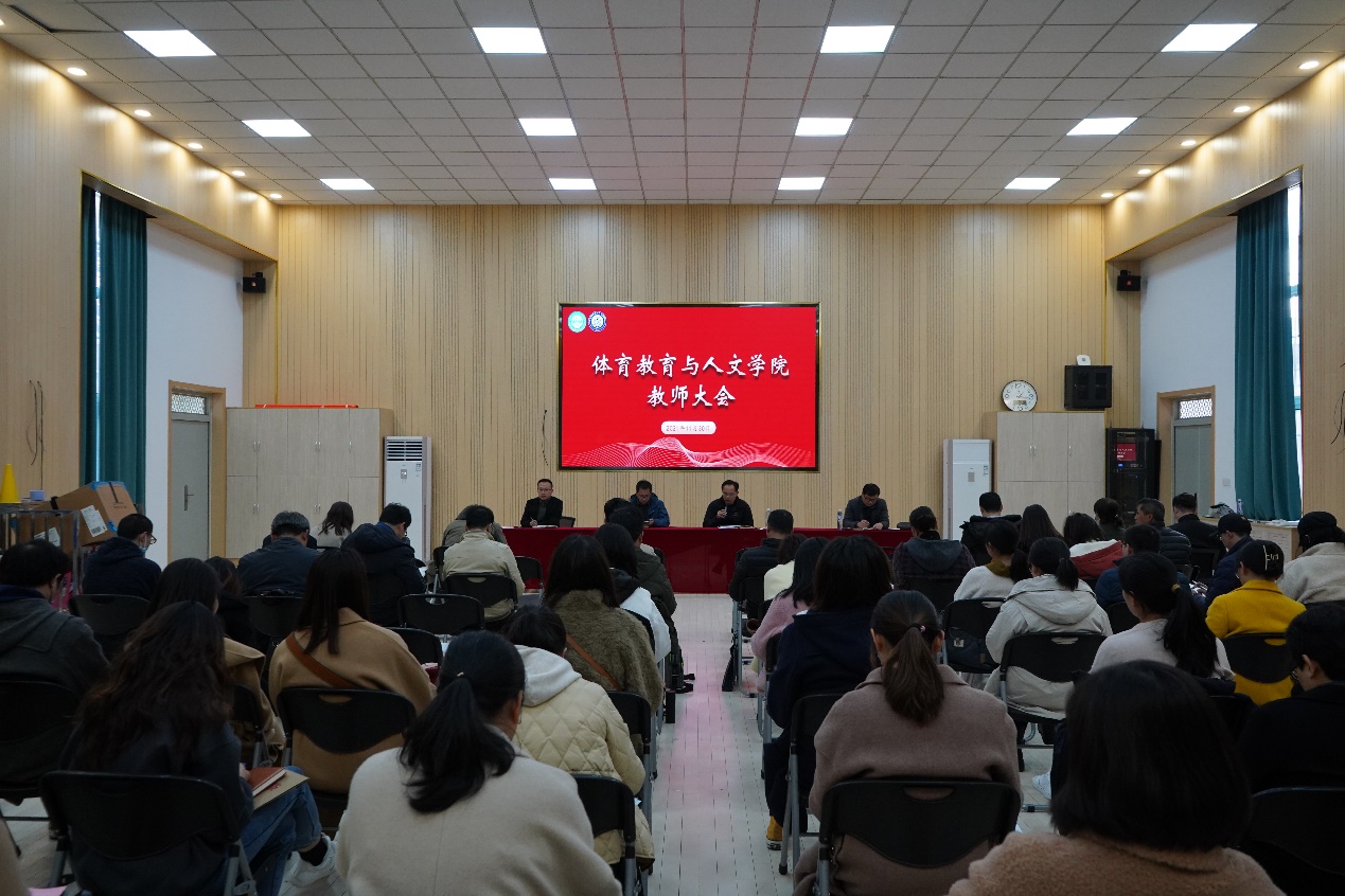 为了进一步传达学习党的十九届六中全会精神,体育教育与人文学院于11月30日下午在东阶教室召开全院教师大会。体育教育与人文学院党总支书记邹国忠、副院长(主持工作)王凯、党总支副书记卢奎、副院长李金宝出席会议,体育教育与人文学院全体教师参加会议。会议由王凯主持。