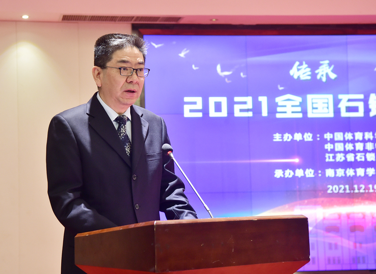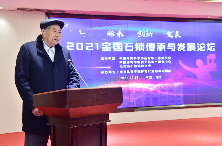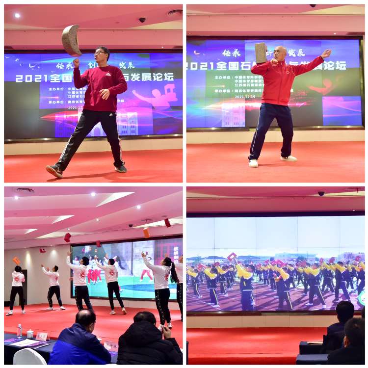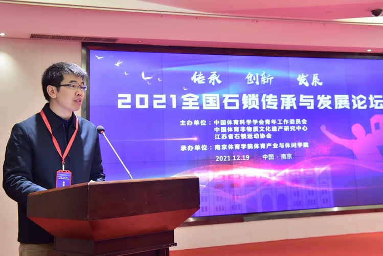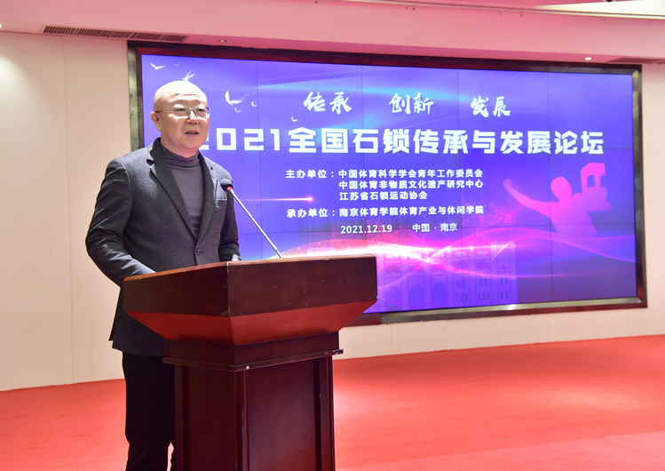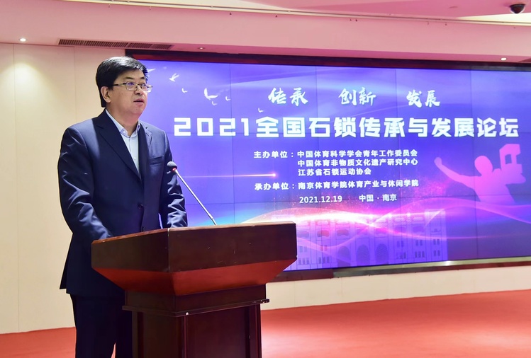 隆冬时节,天寒水阔。一场助推中国非物质遗产传承与创新的文化盛会在南京拉开帷幕。12月19日,全国石锁传承与发展论坛在南京紫东生态国际会议中心盛大召开,来自江苏省教育厅、江苏省体育局等主管部门领导、全国体育院校的知名学者及行业协会代表共聚一堂,从宏观管理、微观实践等维度视角共同探讨中国非物质文化遗产项目的传承、发展和创新。本次论坛由中国体育科学学会青年工作委员会、中国体育非物质文化遗产研究中心、江苏省石锁运动协会主办,南京体育学院体育产业与休闲学院承办。活动包括新书发布、节目展演、学术报告、圆桌论坛等部分,采取线上线下相结合的方式进行,通过网络全程直播。