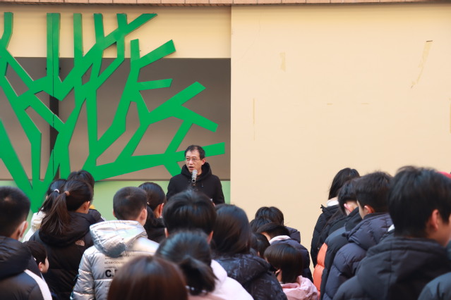 党总支书记、校长吴建华首先对同学们在新学期提出美好的祝愿和希望。他回顾了冬季奥运会中我国运动员顽强拼搏的事迹,希望同学们在为谷爱凌、苏翊鸣等奥运冠军喝彩的同时,更要看到他们背后辛苦的付出,看到他们身上爱国、奋斗的中国精神。吴建华希望同学们以冬奥健儿为榜样,心怀远大志向,自律、努力、脚踏实地、勇于突破,在新学期中寻找更好的自我。