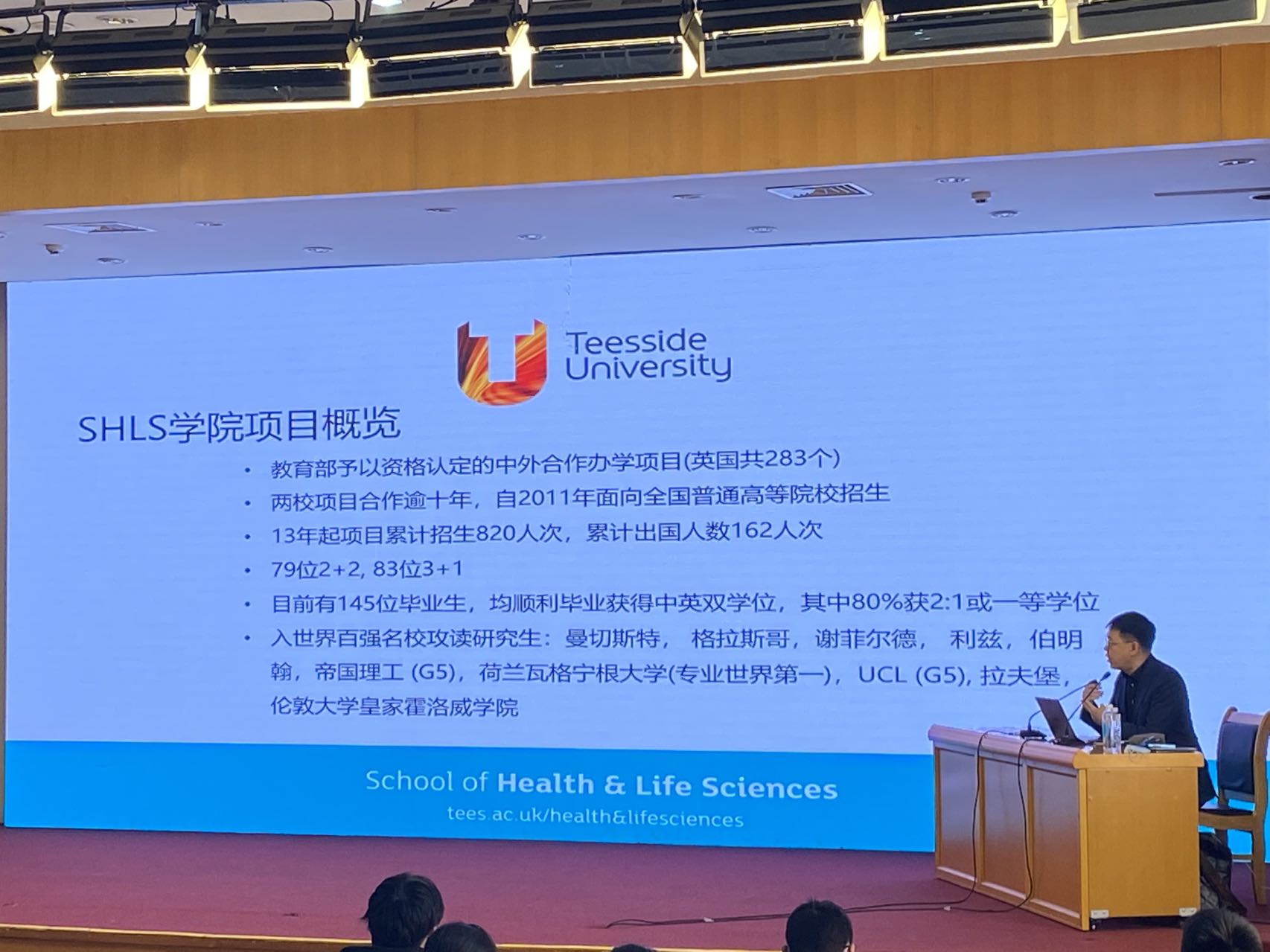 会上,党政办(国际交流办公室)副主任张珏详细介绍了该项目的基本情况以及我校关于学生境外交流的激励资助政策。英国提赛德大学驻中国办事处教学部负责人唐天宇介绍了相关专业的录取要求、具体课程介绍、获得学位要求等基本信息,并向大家展示了提赛德大学优美的校园环境及先进的软硬件教学条件,让南体学生对赴英国交流的学习生活有了初步了解。