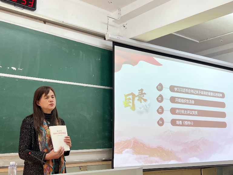 会上,沈鹤军带领党员学习了《深入学习习近平关于体育的重要论述》的总论部分,带领成员对本书的主要思想、整体脉络以及现实意义进行初步学习,并提醒党员在平时要认真学习,领悟书中的重要思想。