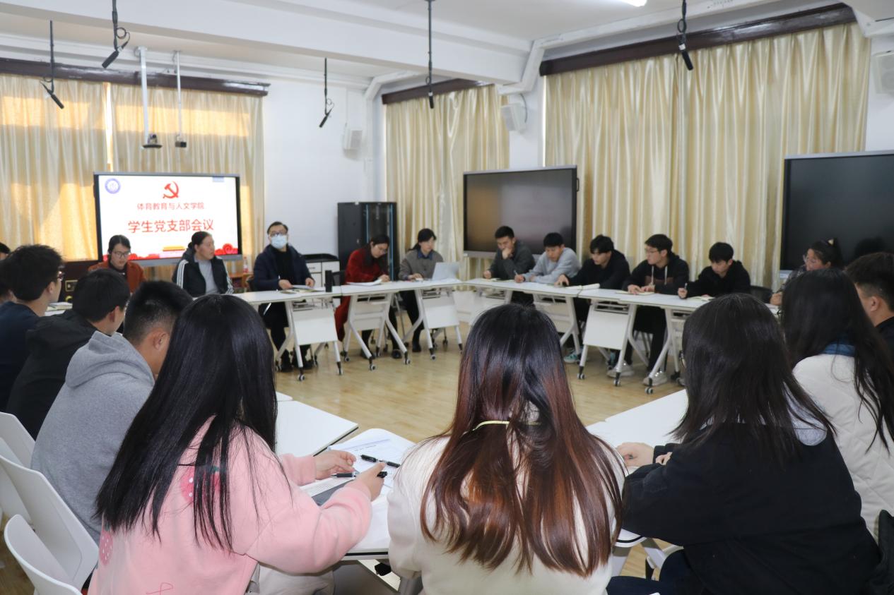 3月10日下午,按照学校统一部署,体育教育与人文学院学生党支部召开支部大会,深入学习习近平关于体育的重要论述专题,学习传达2022年全国两会精神,学习省教育厅厅长、党组书记葛道凯关于以体教融合促进人才发展的论述文章,随后召党史学习专题组织生活会开展开党员民主评议。学院党总支副书记兼学生党支部书记卢奎、教师党员庄萍华、支部纪检委员宋树梅、组织委员兼宣传委员乐晓云、教师党员郭卫玲、沈梦出席会议。学生党支部全体学生党员参加会议。会议由乐晓云主持。