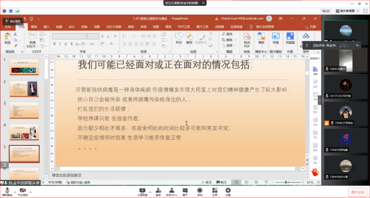 此次讲座以疫情期间的心理疏导与调试为主题,是学院结合当前学生需求开展的一次活动,有效帮助学生疏导与调适校园封闭管理期间产生的不良心理影响,引导学生更为关注自己的心理健康,实现健康成长。
