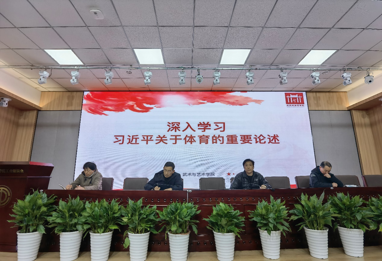 按照武术与艺术学院党总支理论学习中心组学习计划安排,3月22日中午,学院党总支理论学习中心组全体成员及其他部分相关教职工在校教工之家多功能厅召开《深入学习习近平关于体育的重要论述》学习研讨会,全体理论学习中心(扩大)组成员参加了学习研讨会,会议由党总支书记殷怀刚主持。