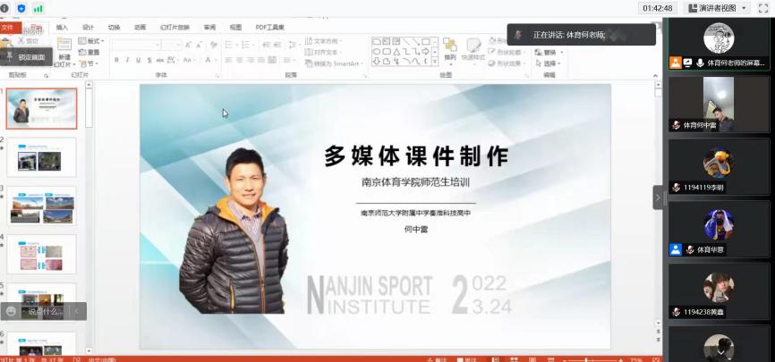 3月24日,体育教育与人文学院特邀南京师范大学附属中学秦淮科技高中何中雷老师于线上开展“体育多媒体课件制作与应用”主题讲座。体育教育与人文学院副院长叶强出席讲座,体育教育专业2018、2019级学生参与讲座。