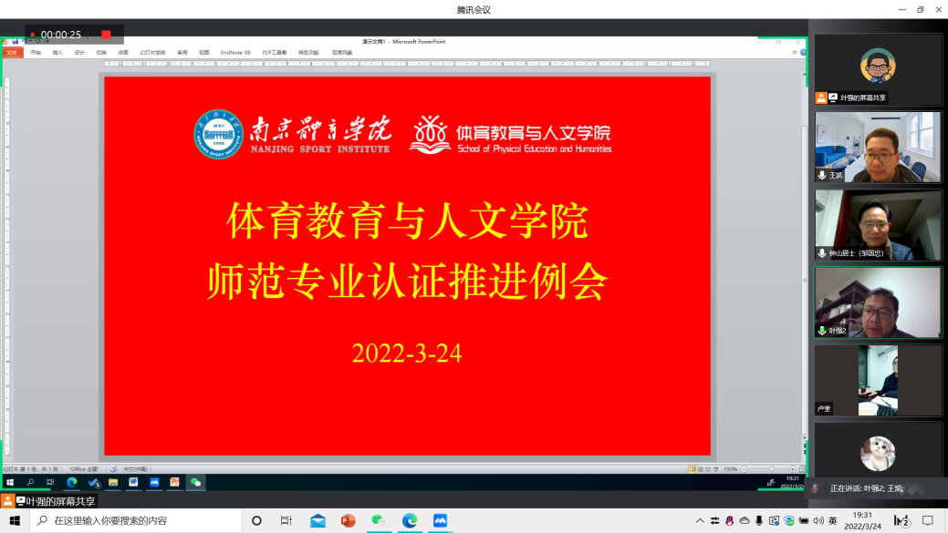为进一步推进体育教育师范专业认证工作,3月24日晚,体育教育与人文学院通过腾讯会议平台召开师范专业认证线上推进例会。体育教育与人文学院党总支书记邹国忠、副院长(主持工作)王凯、党总支副书记卢奎、副院长叶强出席会议,参与师范认证工作的全体成员参与会议。会议由王凯主持。