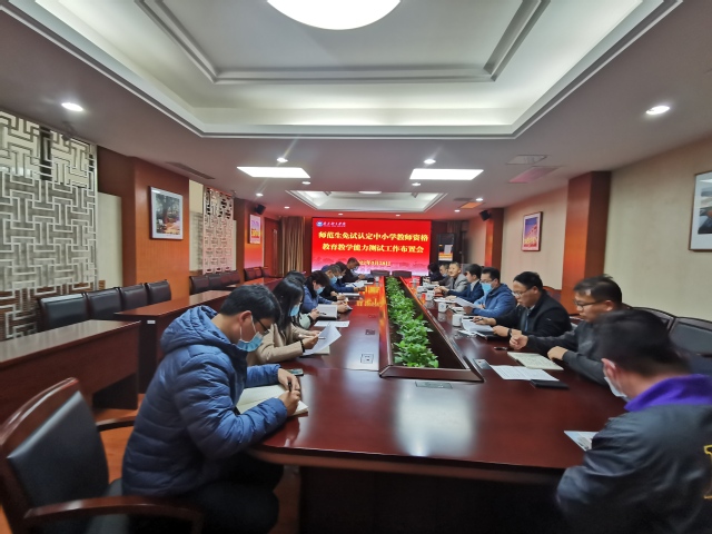 会上,兰亚明强调,我校首次开展师范生免试认定中小学教师资格教育教学能力测试工作,事关我校师范人才培养质量,事关学校师范类专业免试认定资格和招生指标,必须集中全力做好相关工作。对此,他提出三点要求:一是公平公正规范,相关部门及学院要严格按照教育部和教育厅的要求,切实做好考试组织工作。二是做到零投诉,相关部门及学院要密切配合,做到工作通知到位、政策理解到位、宣传解释到位、质量把关到位和安全稳定到位,圆满完成此次工作。三是进一步细化工作方案,综合研判疫情防控形势,充分考虑在报名、笔试、面试等环节可能出现的各种情况和问题,做好预案。