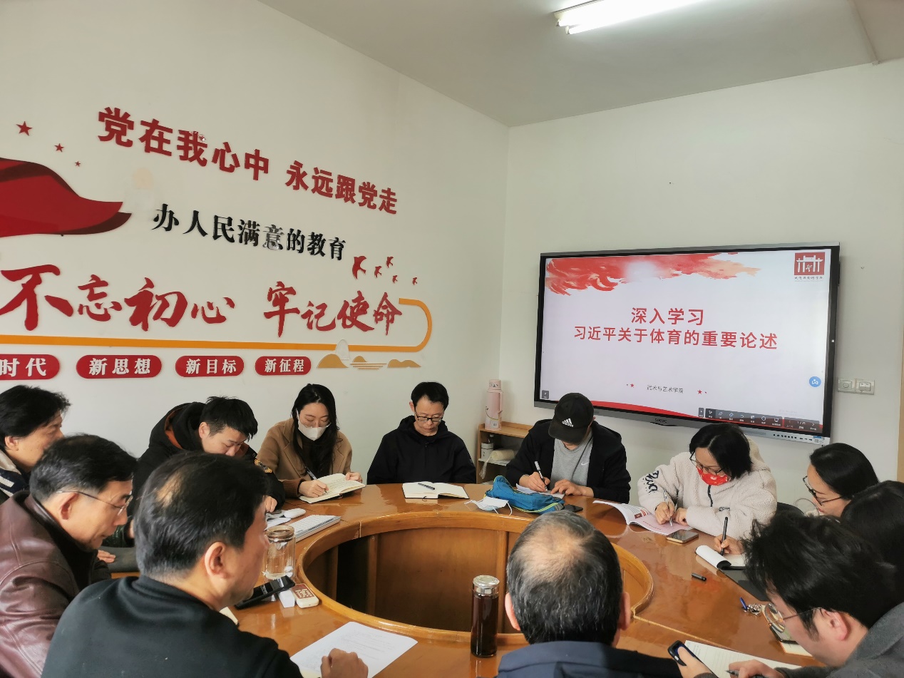殷怀刚要求以支部为单位在全院范围内迅速开展两会精神以及《深入学习习近平关于体育的重要论述》的学习、传达;要求各支部书记领学、全体党员、师生员工们自学相结合,学懂弄通的基础上结合各自工作实际开展工作。
