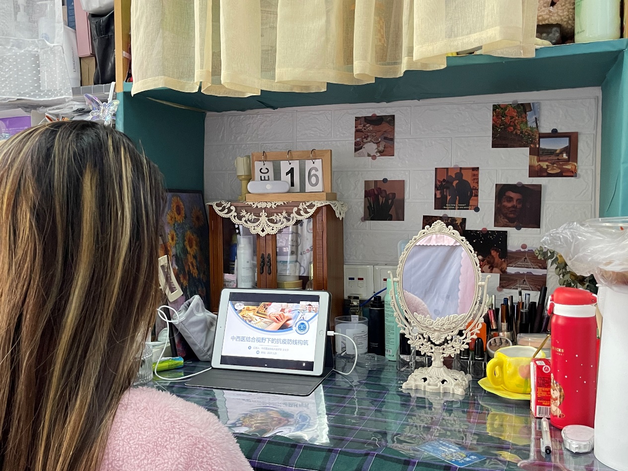 王礼宁博士以“中西医结合视野下的抗疫防线构筑”为主题进行讲述,对新冠肺炎病毒的情况进行了概述,并从新冠肺炎的传播途径和预防措施讲起,结合中西医结合抗疫的特色,重点从增强思想认识与个人防护等角度,专业而系统地进行了讲解,为同学们开展了一堂生动精彩的知识科普讲座。