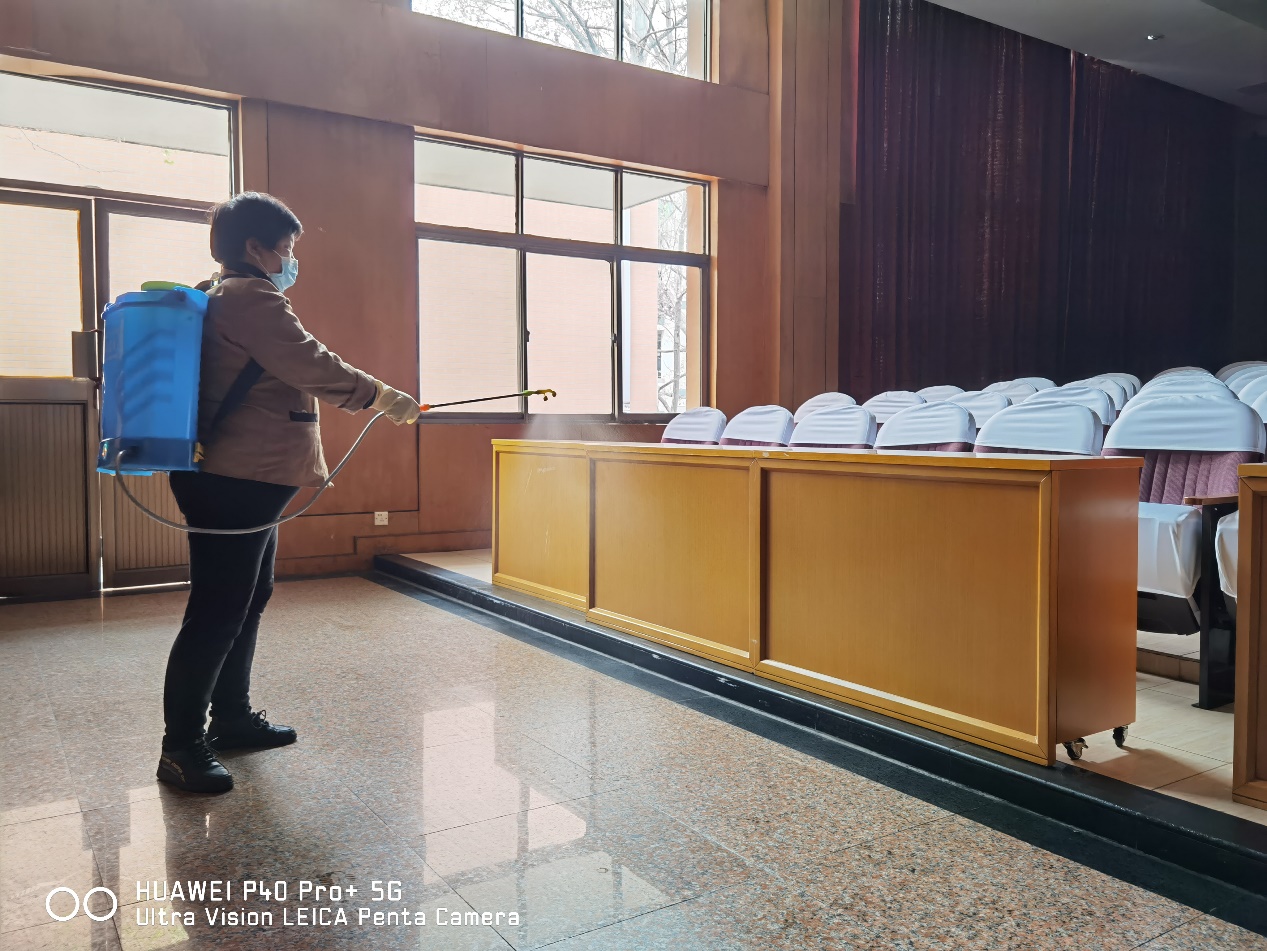 校园卫生消杀是疫情防控的重要内容之一。自疫情突发以来,后勤处认真组织校园消杀工作,细化分工、明确职责、强化监督,确保各项消杀措施落细落小落实。从教室到场馆,从食堂到公寓,从室内到室外,从重点场所到区域环境,校园到处都能见到工作人员消杀的身影。他们认真学习消杀器具的使用,科学合理配置消毒药水,采用多种方法对学校公共区域进行全区域、立体式消毒灭菌,重点对桌椅、门把手、楼道、器材、洗手间、电梯轿厢、垃圾桶等关键区域,关键点位实施密集消毒灭菌,做到全面、彻底、不留死角,全面做好所有公共区域的消杀任务,以实际行动守护校园安全。